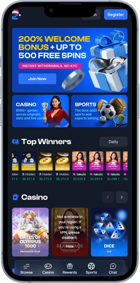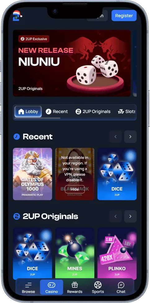 Launched in 2025, 2UP Casino wasted no time establishing itself as a reliable VPN-friendly online gambling site with instant payouts. The crypto casino thrills players with thousands of games, a buzzing sportsbook, and appealing bonuses.