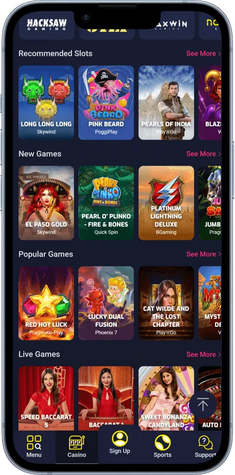 The entire site, from the casino to the sportsbook, promotions, and even settings, is fully responsive on both smartphones and tablets. The pages load quickly, menus are finger-friendly, and everything scales perfectly to smaller mobile screens.