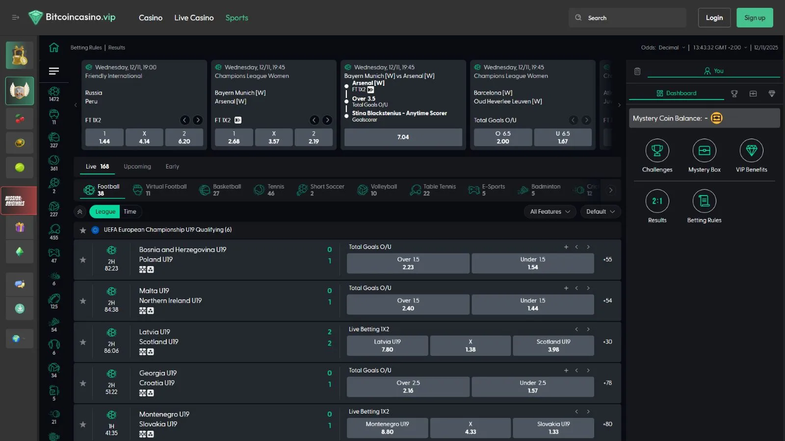 Aside from the usual casino games, there’s more to enjoy at BitcoinVIP. The crypto site offers a decent sportsbook with 25+ sports and esports. Whether you prefer live or pre-match options, there is a vast range of betting markets across various sports.