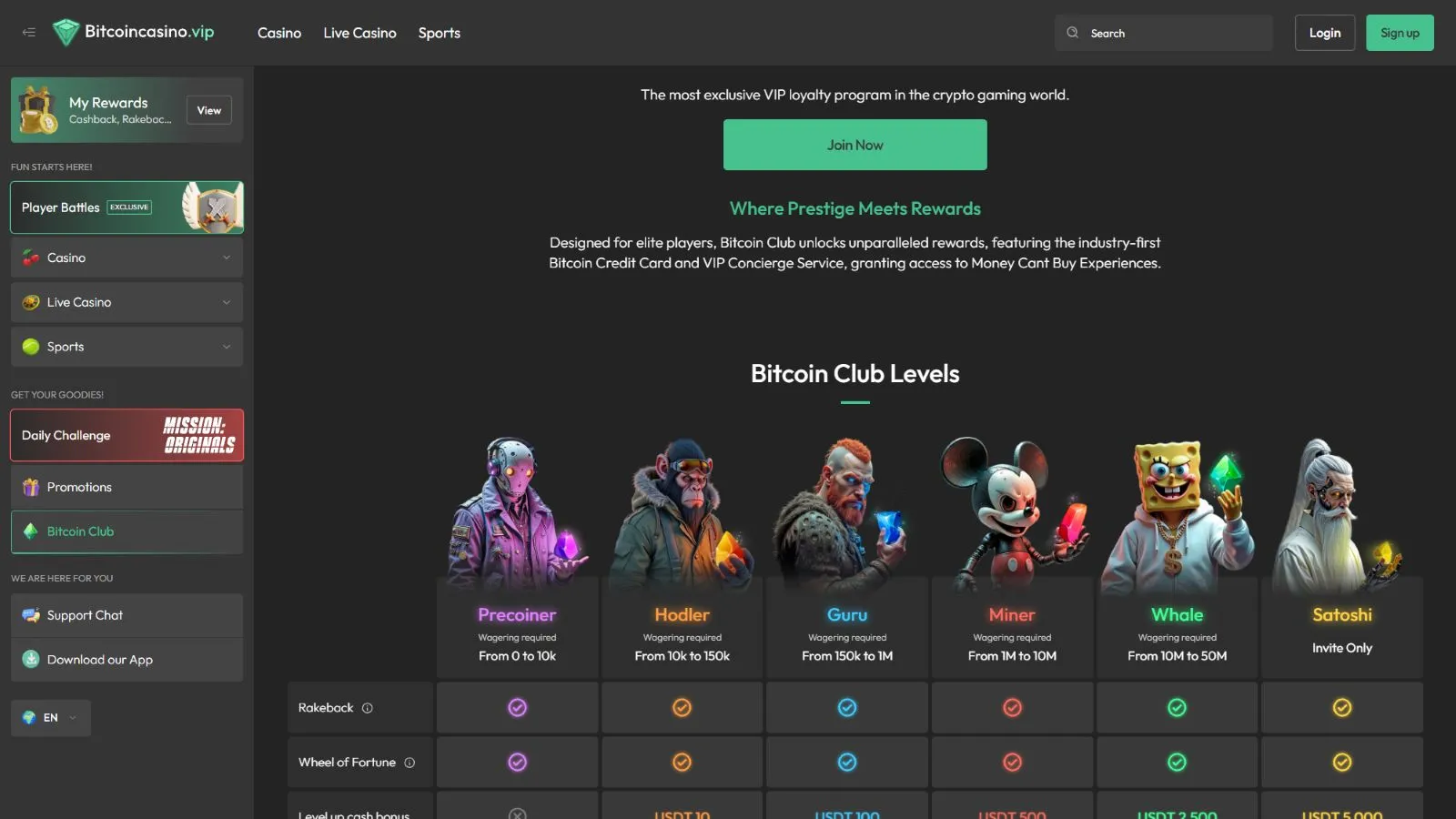 The casino’s VIP program features 7 levels starting from Precoiner to Satoshi. This program aims to offer exclusive benefits to loyal players. The rewards include cashbacks, rakebacks, and other personalized perks.