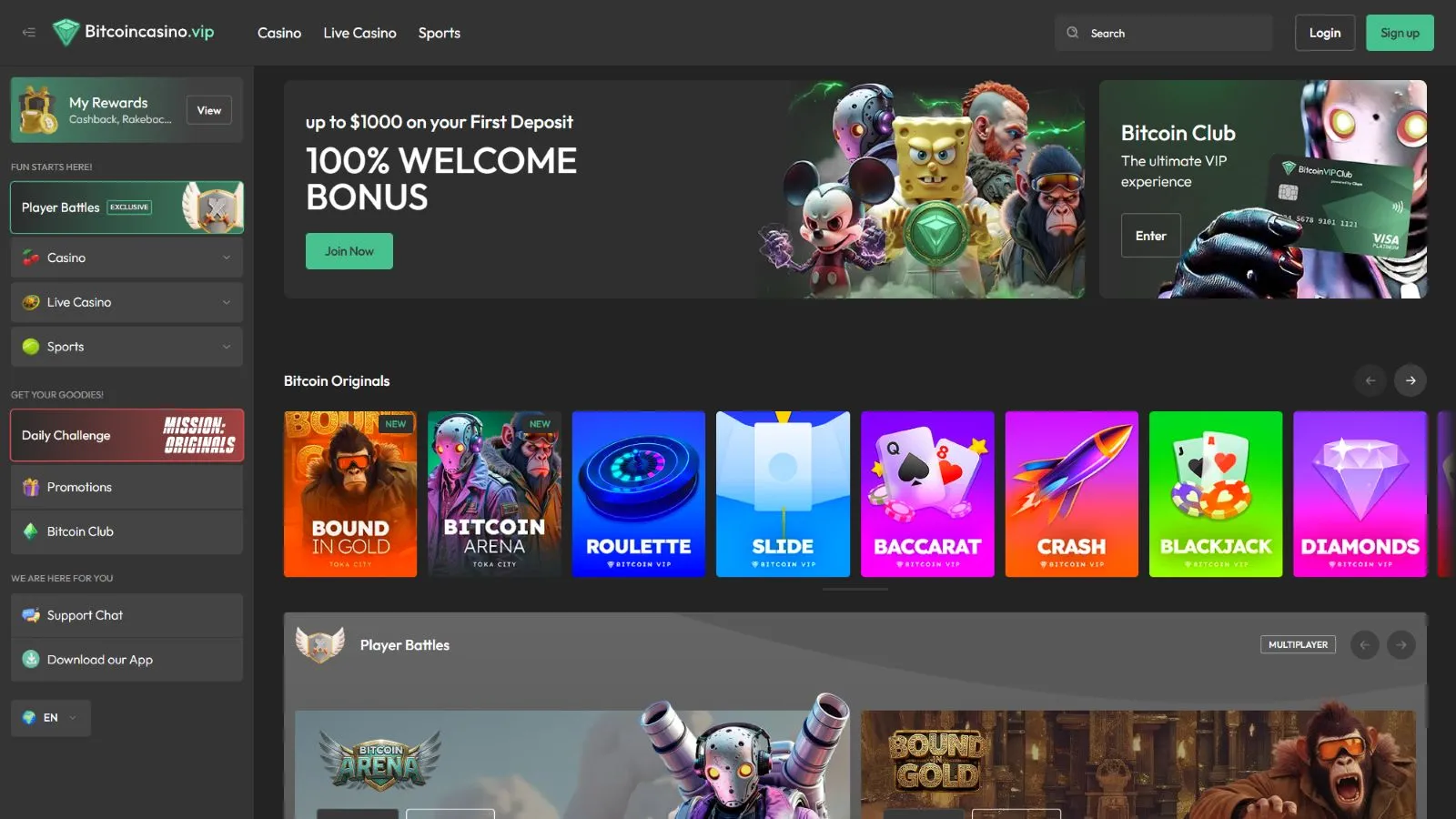 Launched in 2025, the platform offers players smooth financial transactions via many fiat payment systems and cryptocurrencies. It offers generous bonuses, VIP rewards, and Player Battles that truly boost your experience.