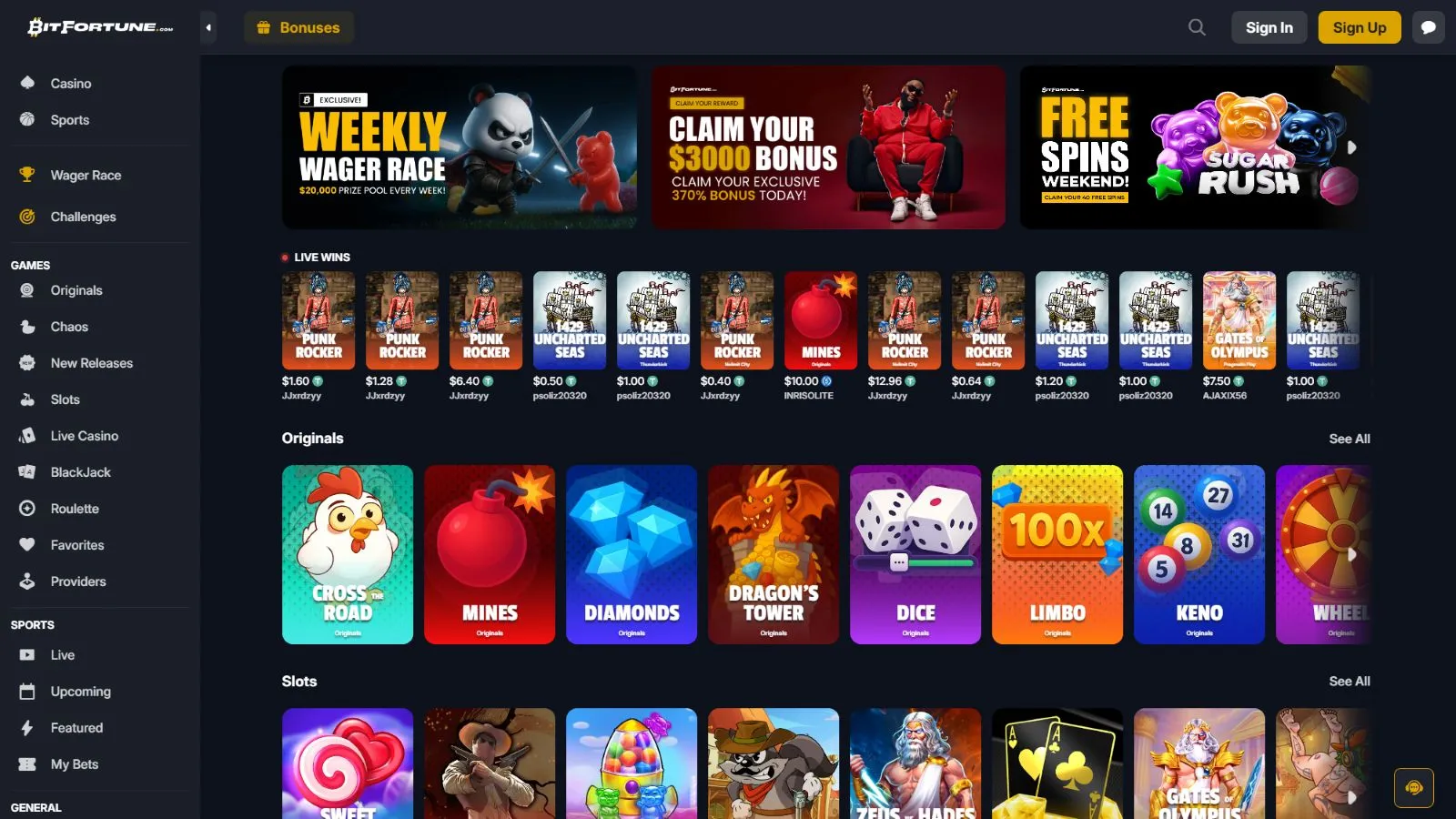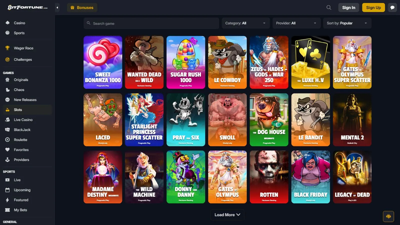 With over 8,500 games in its lobby, BitFortune is a casino for all kinds of players. Partnering with about 50 developers, the platform provides high-quality entertainment. Some of the providers include: