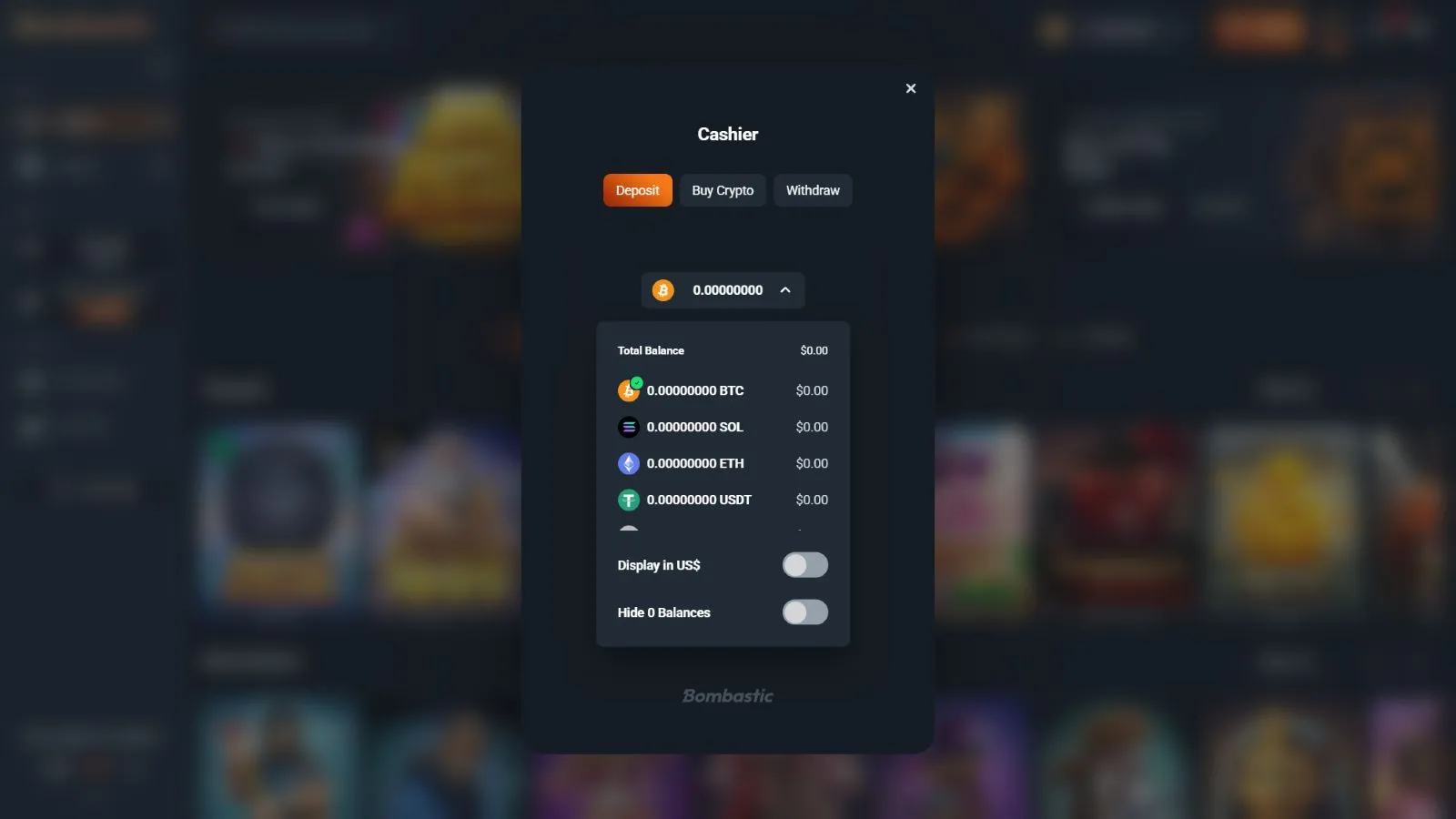 You cannot use fiat currencies to make direct deposits, but you can buy crypto on the website! The payment methods available for buying crypto at Bombastic include:
