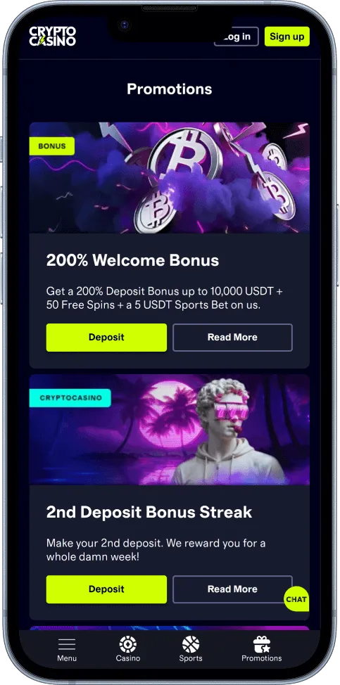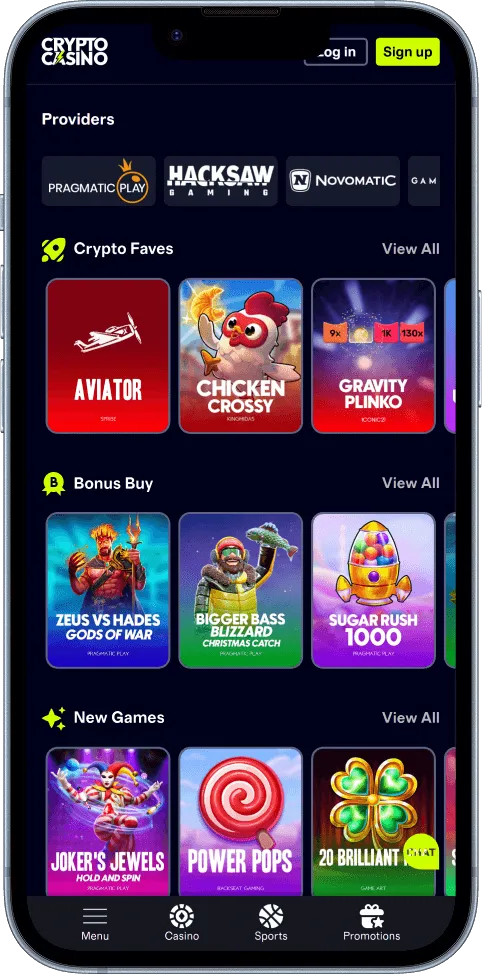 CryptoCasino is fully mobile-responsive, delivering the same smooth experience on smartphones and tablets as on desktop. There is no need to download an app—simply open the site in your mobile browser and log in.