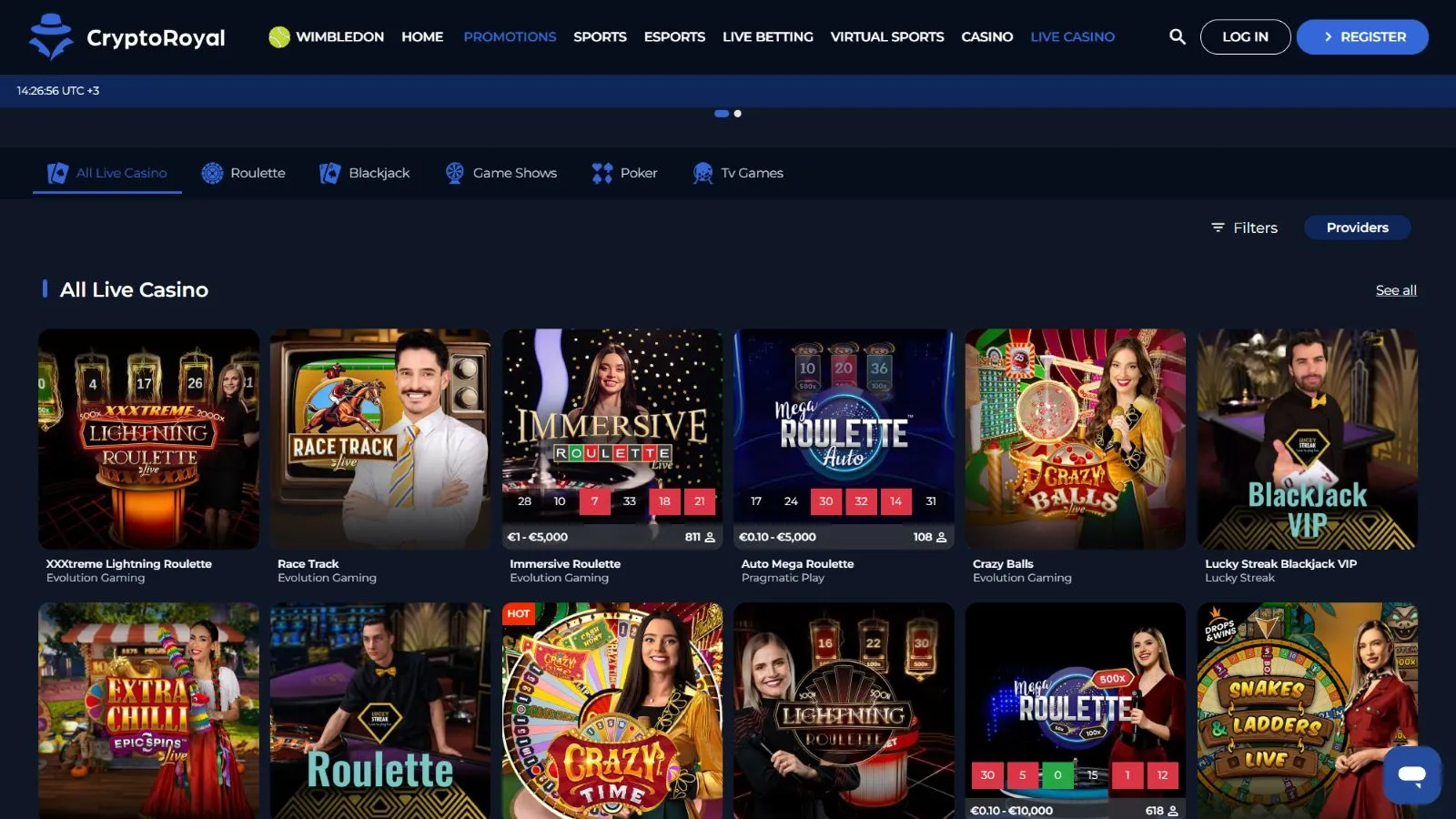 Despite being a new casino, Crypto Royal manages to offer players diverse categories of games. It offers a wide range of slots, virtual table games, crash games, scratch cards, bingo, live casinos, and more. The collection is powered by 50+ developers, including: