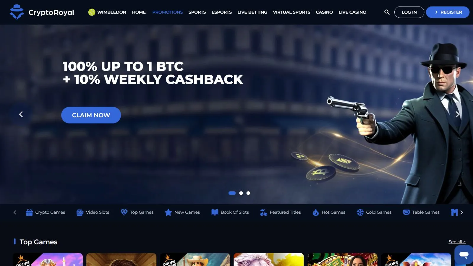 Newcomers on the platform are provided with a massive 100% up to 1BTC + 10% Weekly Cashback on their first deposit. A minimum deposit of 20 USDC and the promo code ROYAL1 Copied are required for this offer. The bonus lasts for 21 days, within which you must wager the deposit and bonus amounts 30x to roll over winnings.