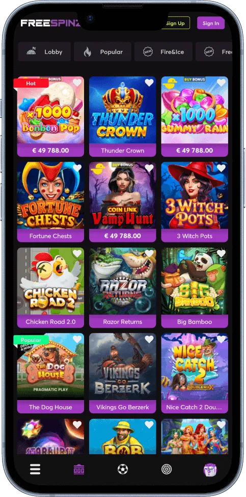 Freespinz doesn’t just toss in a couple of crash games and call it a day. It has over 70 crash games with different risks, speeds, and themes. You’ll find those with the familiar airplane-rising play, as well as those based on animals, markets, sports, and many other things.