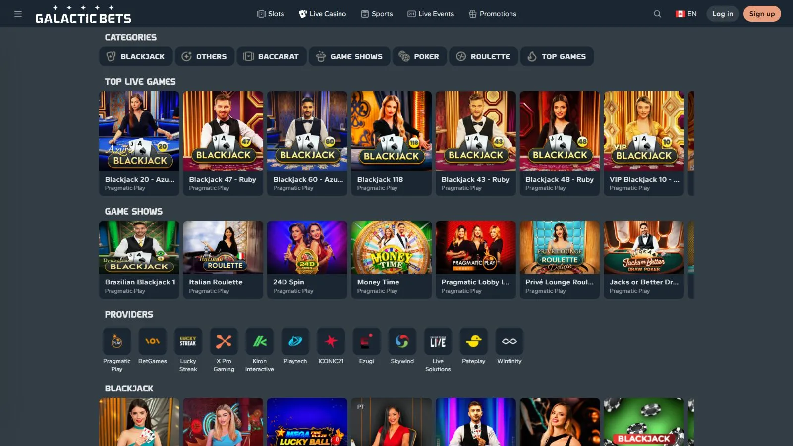 Galactic Bets Casino Games & Providers