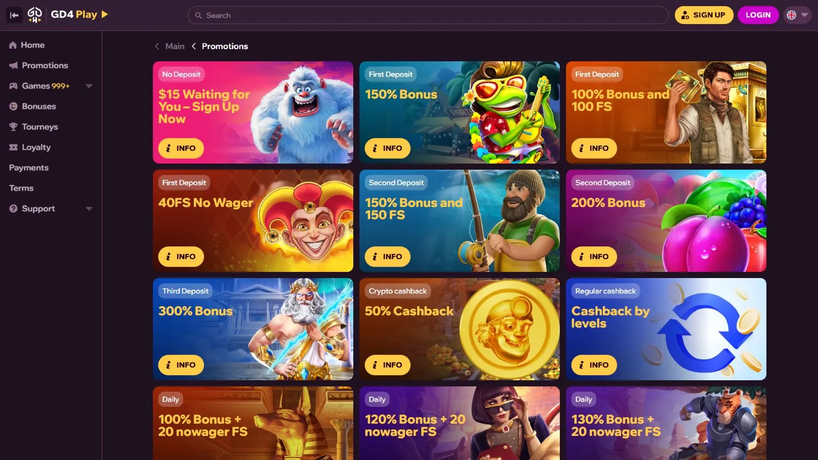 GDFPLAY Casino is a new casino that has only recently entered the market. So far, we've conducted a basic check and are continuing to gather data — from user experience to withdrawal conditions. A full review will be available after a more detailed analysis.