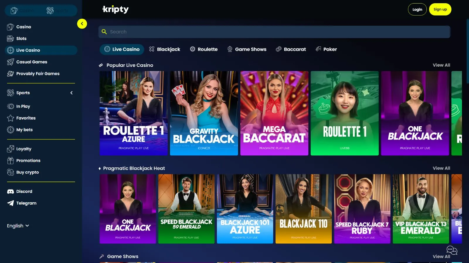 Kripty’s live casino collection is one you’ll certainly find excellent. The online gambling site features 100+ live games, offering both classic and modern games.