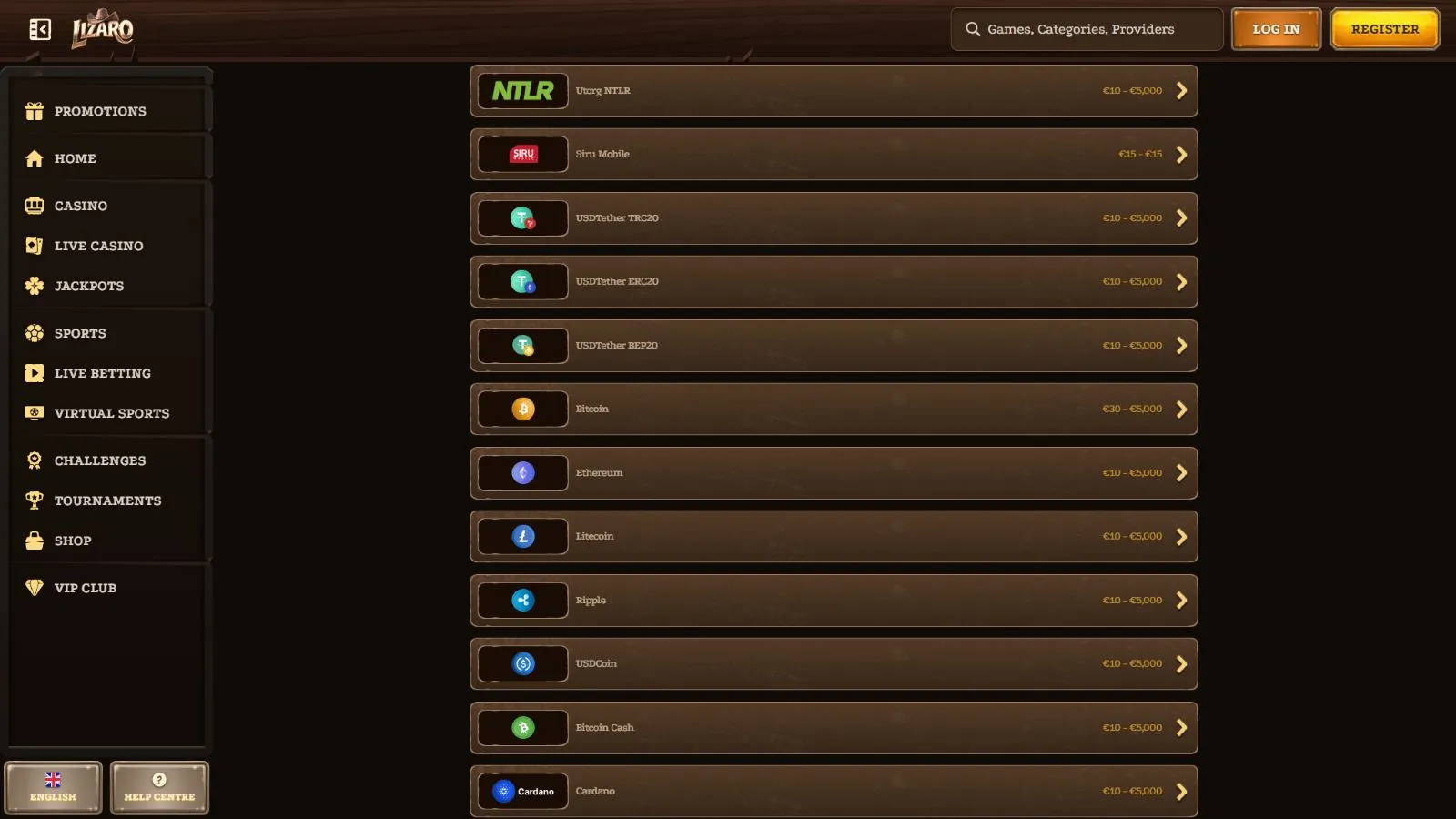 Lizaro takes the excitement up a notch with a variety of challenges where you can earn coins by completing simple tasks. These range from one-time quests to up to 40 weekly tasks in both casino and sports betting categories.