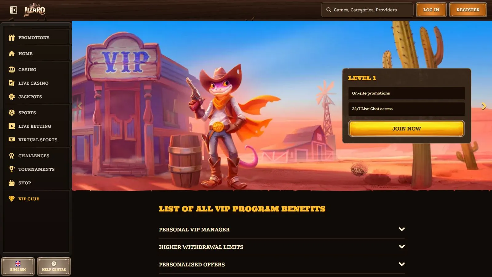 Launched in 2025, Lizaro roars onto the scene with a wild mix of casino games, a robust sportsbook, and competitive bonuses. Serving players in English, Arabic, French, German, and over 15 other languages, this cowboy-themed Bitcoin casino offers a global playground.