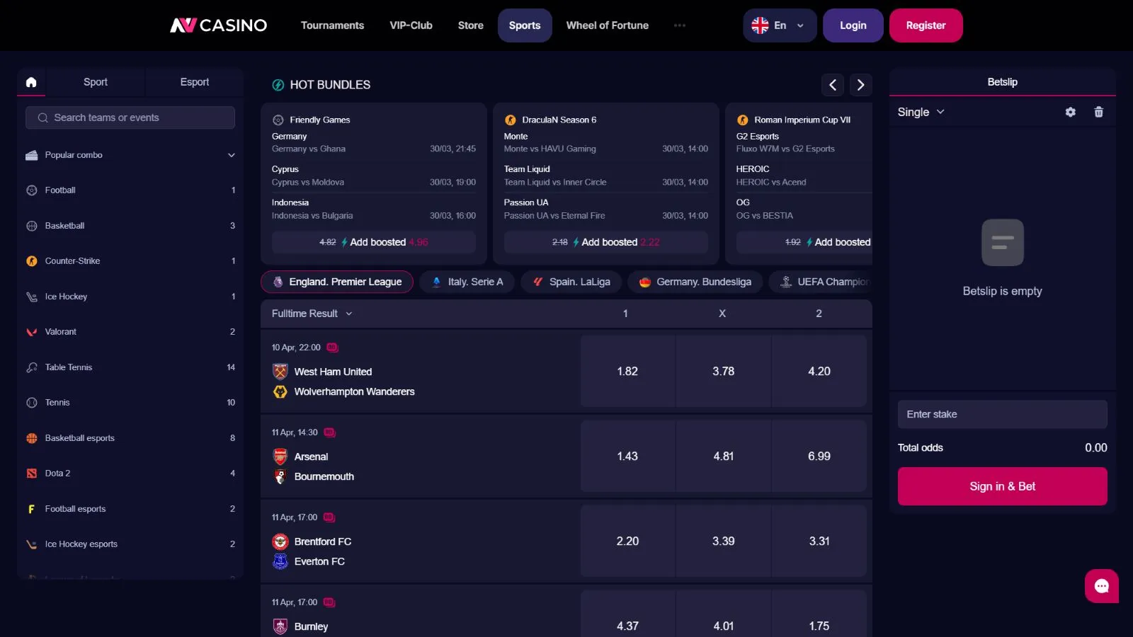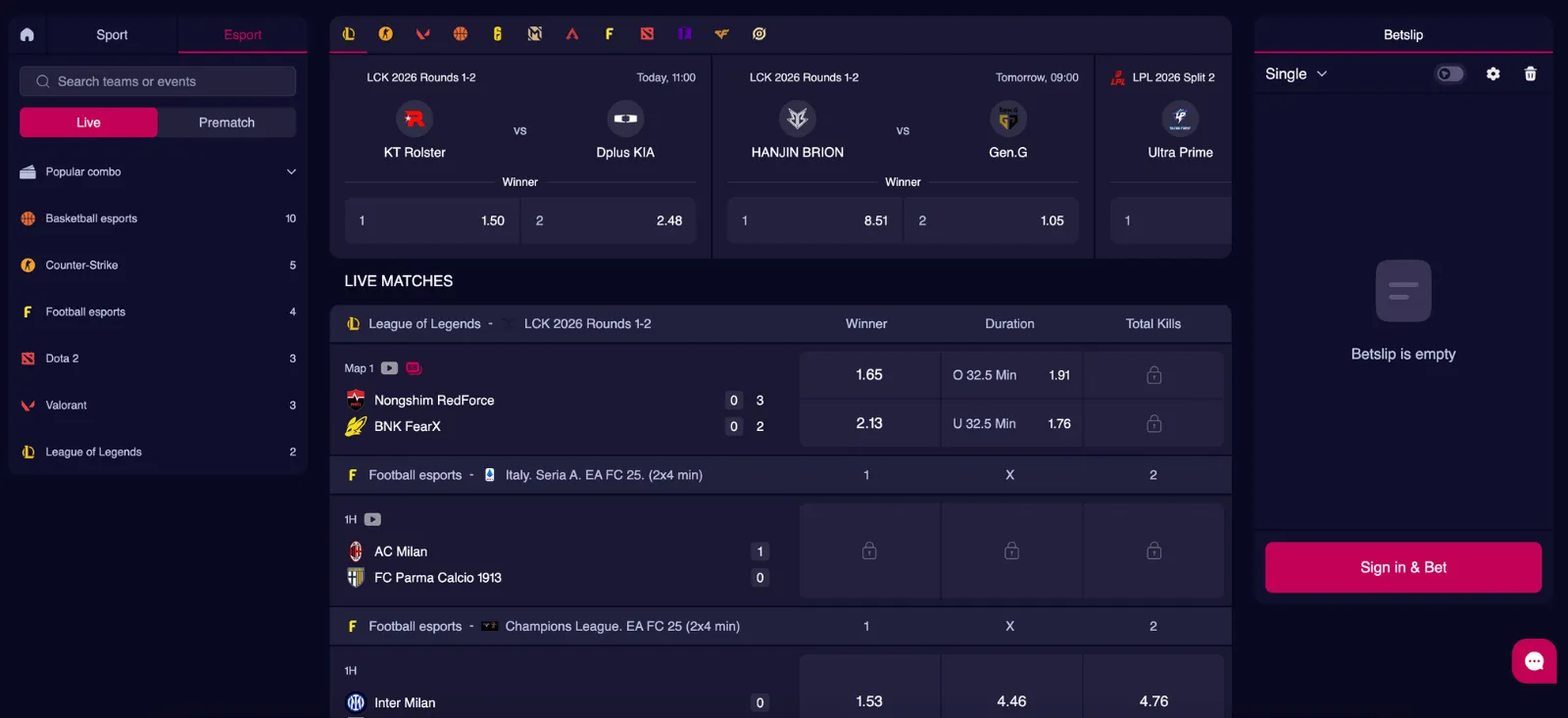 - 15+ sports & esports