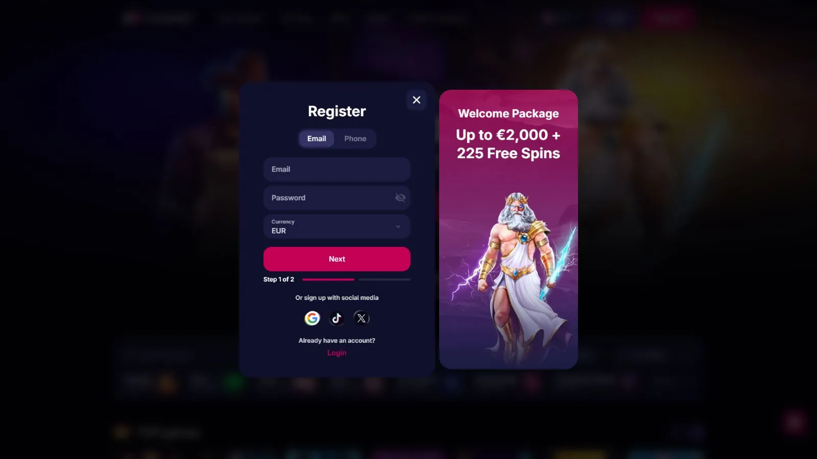 At NV Casino, registration can be done via traditional email signup, with your phone number, or social media accounts like Google, TikTok, and X.