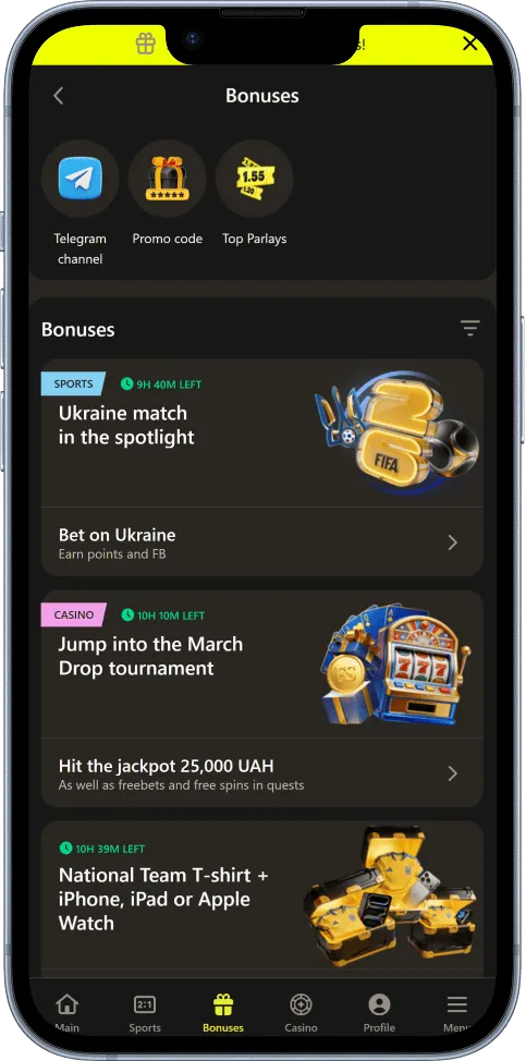 The promo codes for some of these bonuses are frequently shared in the official Telegram channel. Besides free bets and free spins, players are also rewarded with merchandise giveaways like T-shirts, iPhones, and iPads.