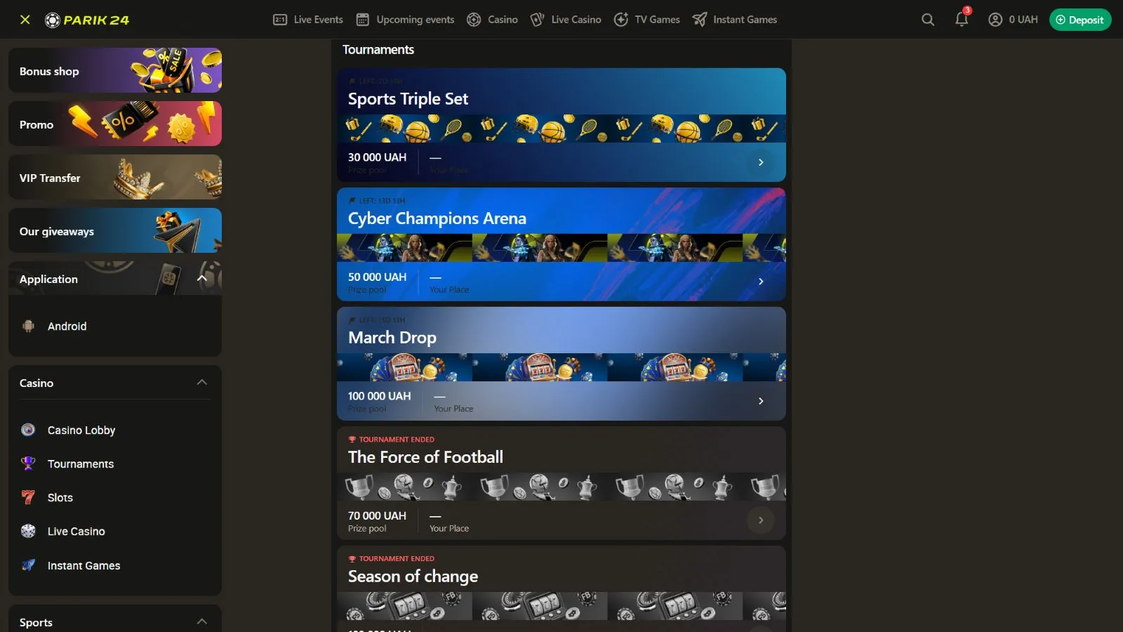 For example, the 2026 March Drop Tournament features various quests in Slots, Live Casino, Instant Games, and Deposits. The top 100 players share a 100,000 UAH prize pool. Other events include Pragmatic Storm, Cash Flow, Lucky Races, and Aviatrix Tournament with massive prize pools.