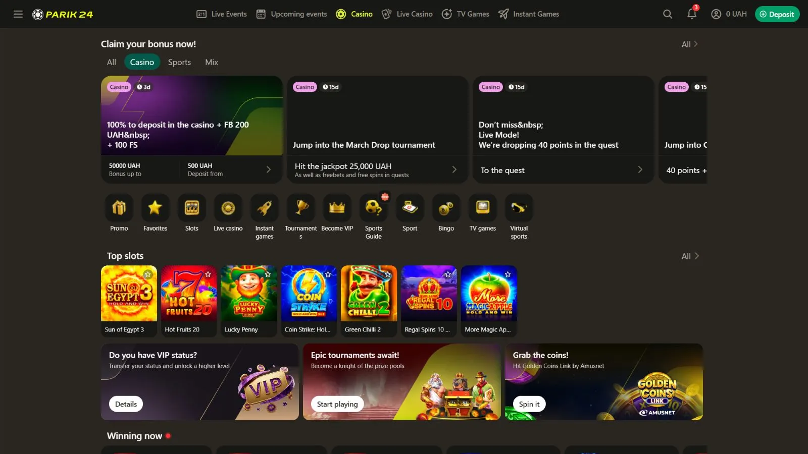 Parik24 Casino has a solid mix of welcome packages, no-wagering cashback, daily/weekly quests, tournaments, and a flexible VIP program. Whatever your preference, this site has something for you.