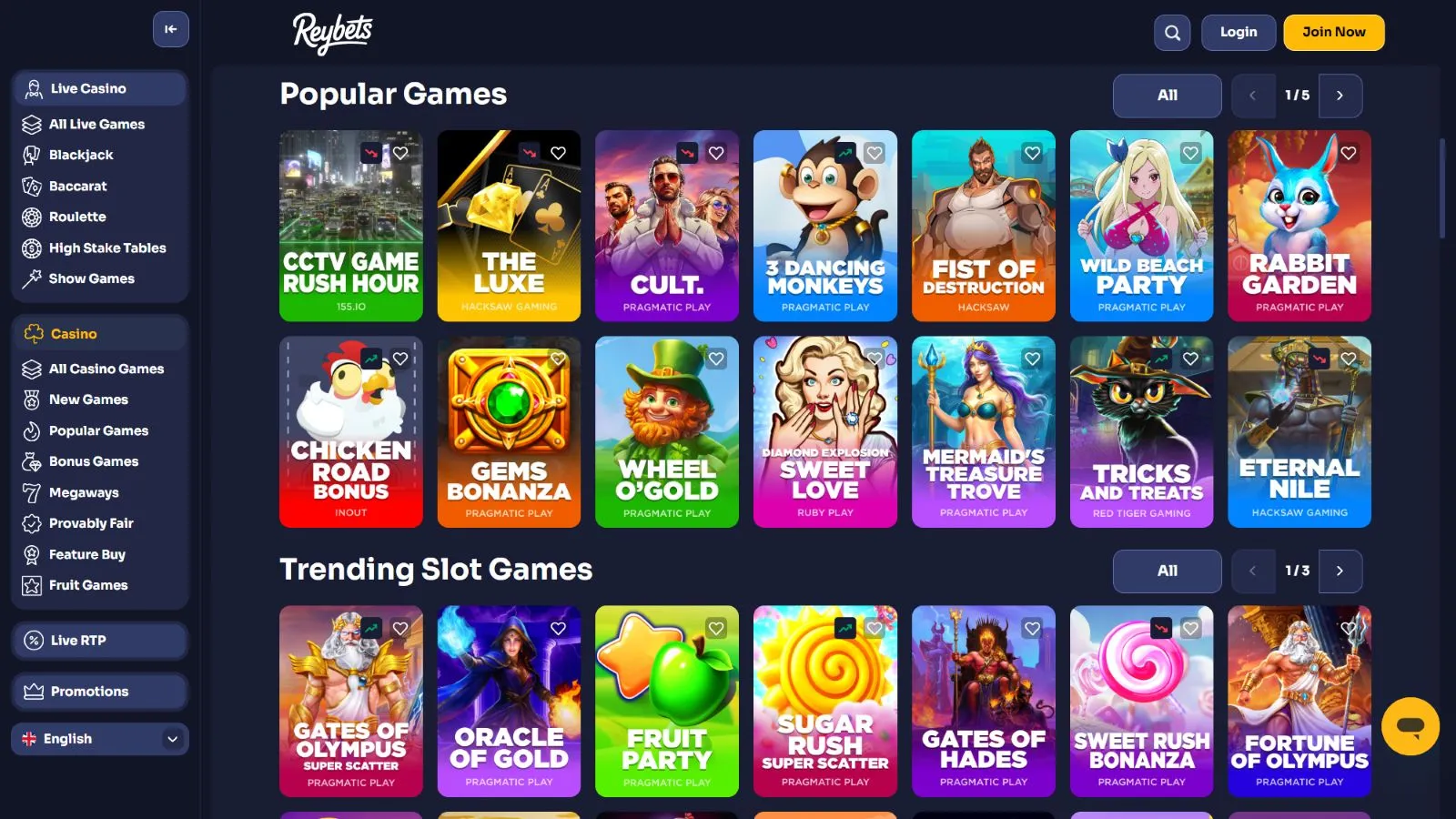 Powered by an army of 60+ developers, Reybets Casino throws you into a paradise with thousands of top-tier games. It features all kinds of online casino games you can think of, ensuring that no player feels left out.