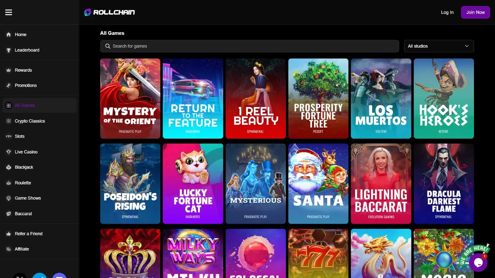 Established in 2025, Rollchain is an online gambling site with a solid variety of games, instant payouts, and nice referral rewards. The crypto casino only supports English, but is accessible in various parts of the world through its support for VPNs.