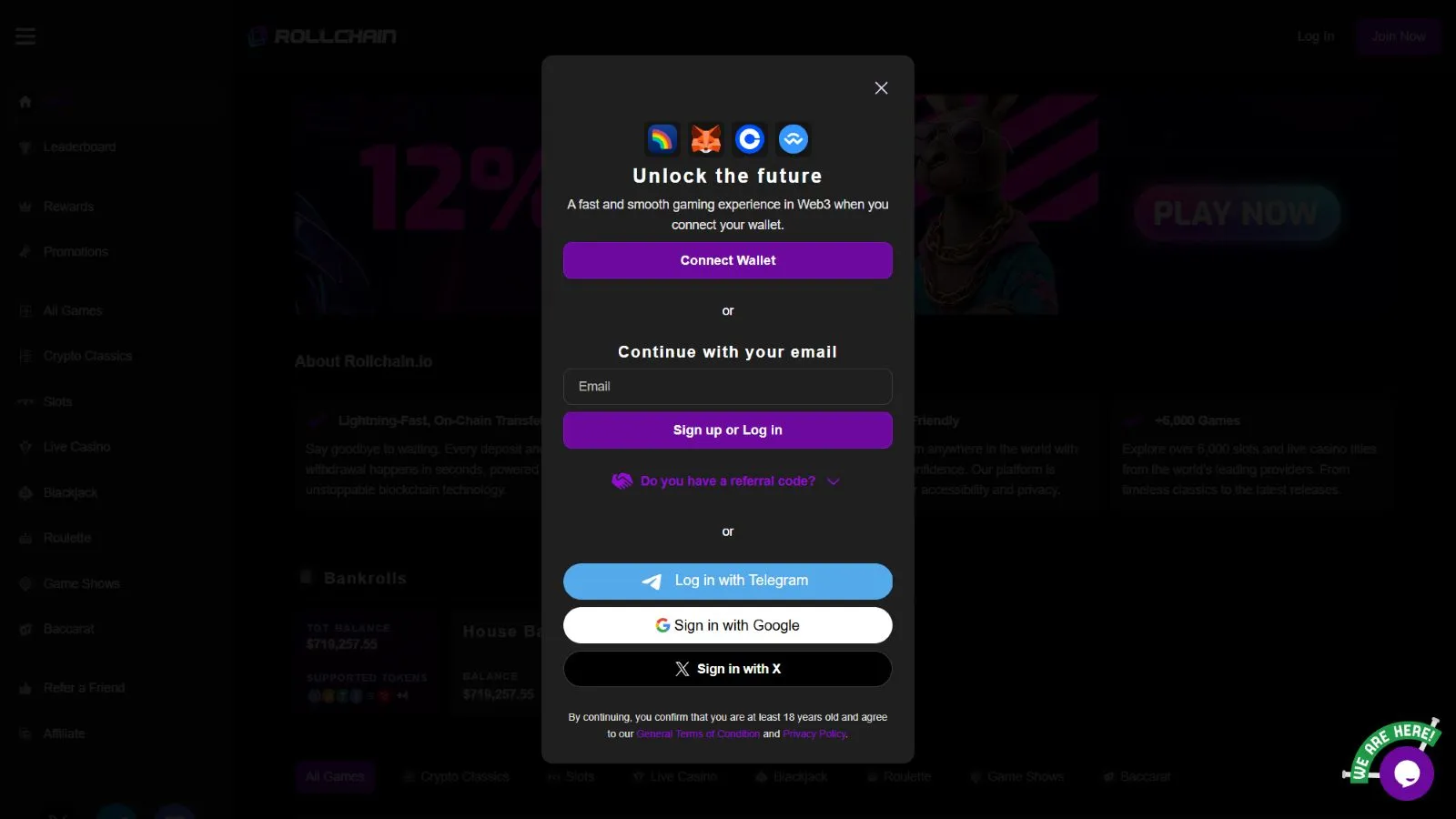Rollchain Casino offers one-tap registration via email, various crypto wallets, and social media. It provides a secure environment for you to enjoy gaming and make payments without worries. If you ever need help, the site has a dedicated support team to assist you.