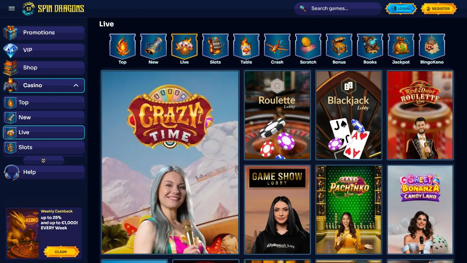 Established in 2025, Spin Dragons is an online crypto casino packed with thousands of games and top-notch bonuses. The site is accessible in English, Portuguese, Italian, and 5+ other languages, ensuring many players can enjoy a native experience.