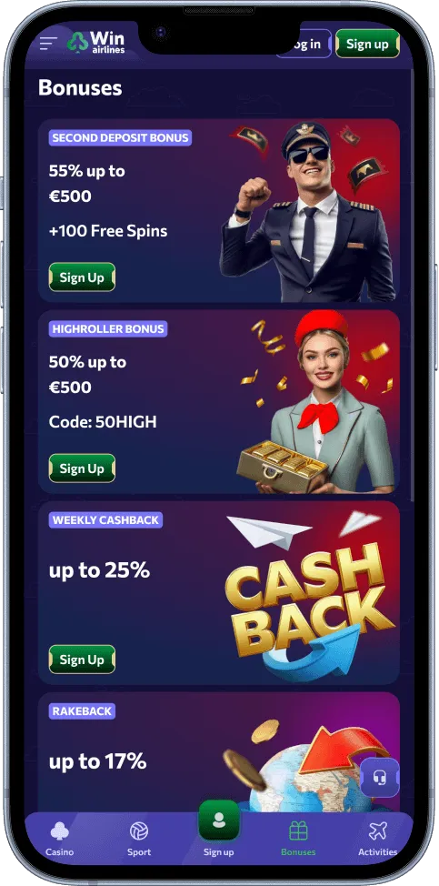On WinAirlines Mobile Casino, nothing feels restricted. You can play the full game library, place bets in the sportsbook, and manage your account with ease. Registration, claiming bonuses, deposits, withdrawals, and even verification can all be handled directly from your mobile device.