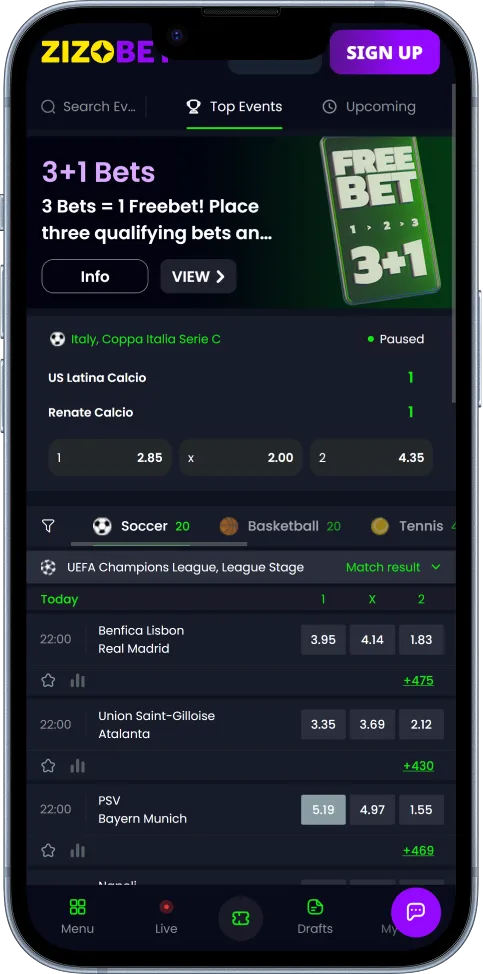 Zizobet also rewards punters with up to €100 as a free bet when they make at least 3 bets. The free bet is given as 15% of your total stake. It’s credited immediately after your final ticket is settled.
