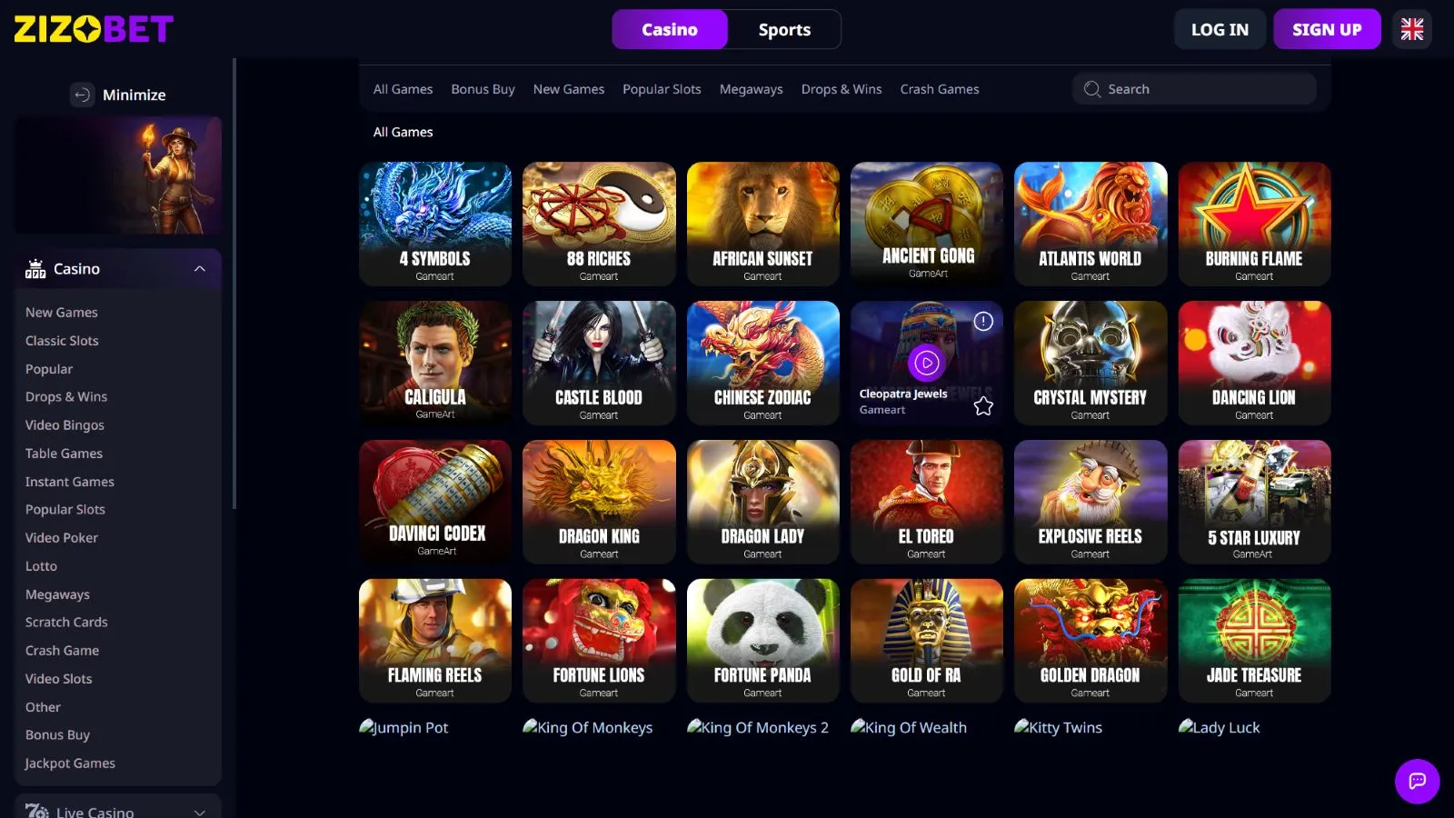 With a library pushing past 8,000 games, Zizobet gives you enough to keep playing past bedtime. It’s loaded with every category imaginable, ensuring no player is lost there.