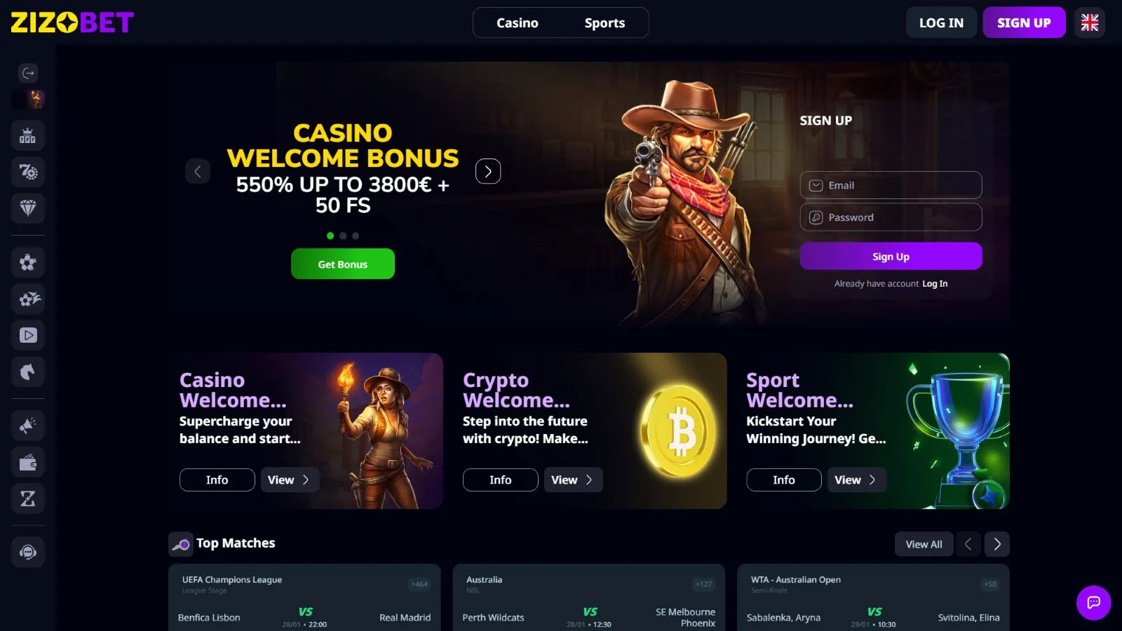 Online since 2025, Zizobet brings together crypto casino entertainment and sports betting, covering all your gaming needs. Available in English, Spanish, German, Italian, and French, the online gambling platform welcomes players from as many countries as possible.