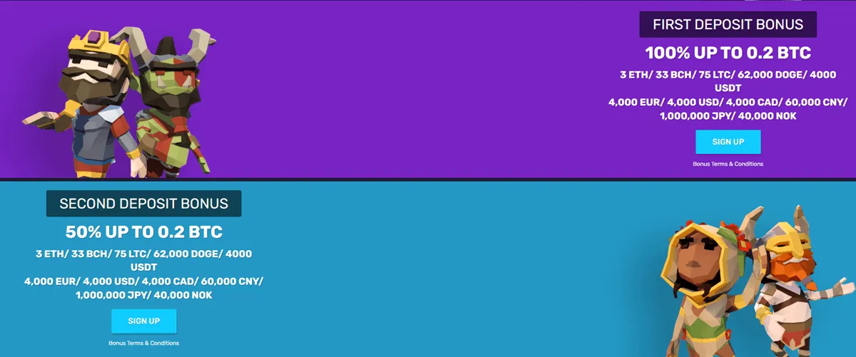 В этом крипто-казино приветственный набор бонусов разделен на первые три депозита: